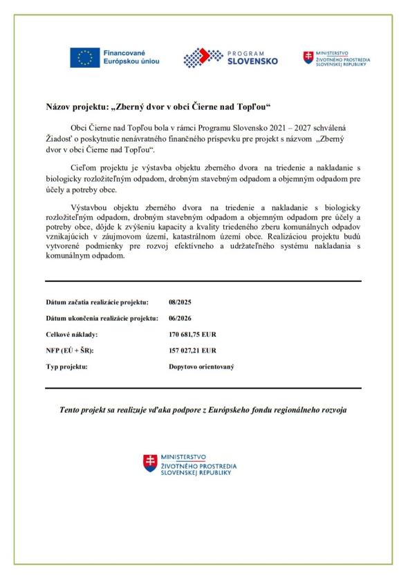 Zberný dvor v obci Čierne nad Topľou